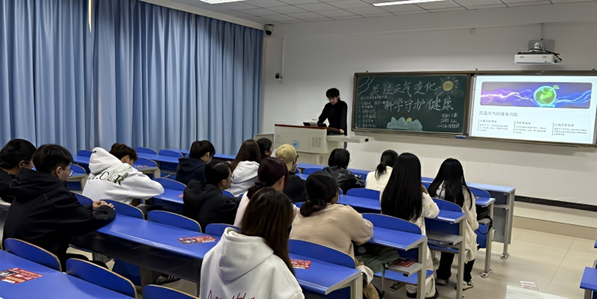 此外,对于即将发生的极端天气,主讲人重点指出要主动关注天气预报,提前调整生活习惯,学习科学防护,减少因天气引起的可避免疾病风险;同学们保护自身的同时,也应及时提醒身边同学及家人,做到友善团结。