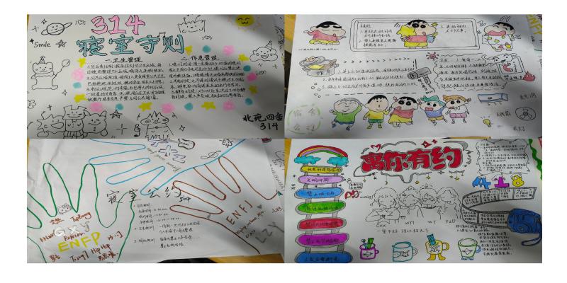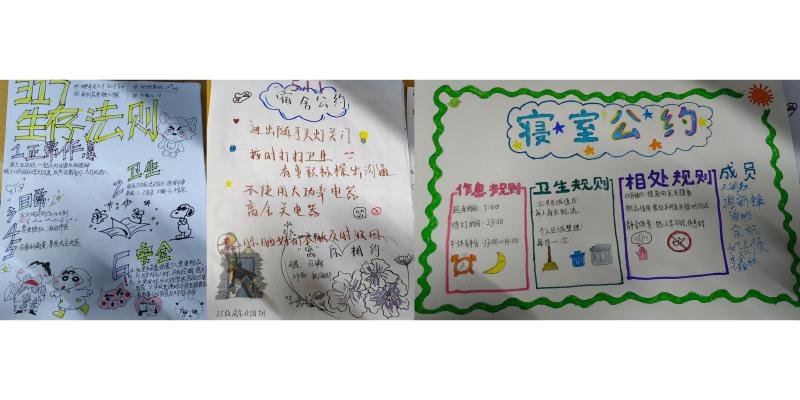 本次比赛以“寝室公约”为核心,引导25级学生共同制定规则,倡导积极健康的学习生活风尚。各寝室群策群力,将卫生习惯、作息安排、文明相处等内容融入公约,既有“定期整理无死角,物品摆放有条理”的务实规定,也有“包容互助共成长,和谐氛围暖人心”的温情约定。通过“整洁+公约+改造”三维联动,结合专业所学知识,将寝室打造成“洁净、整洁、有序,富有温度、蕴含特色”的成长空间。