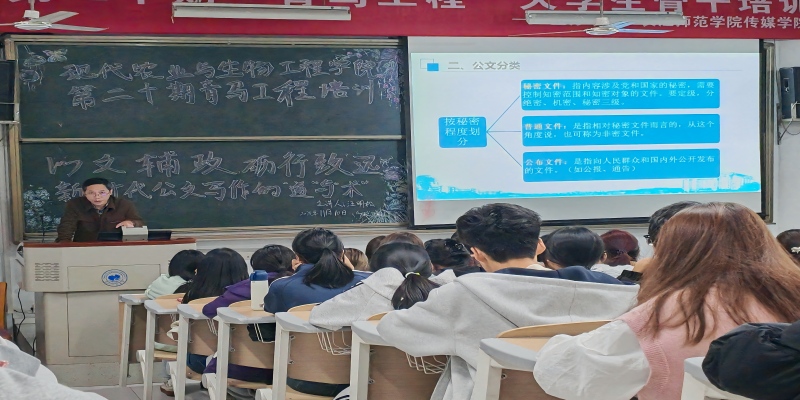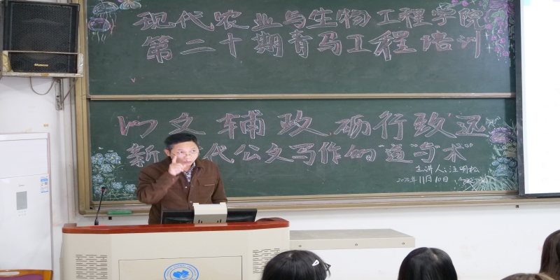 2025年11月10日晚,我院于格律楼03教室举行了第二十期青马工程培训。本次培训由学院党委书记汪明松主讲,主题为“以文辅政砺行致远,新时代公文写作的‘道’与‘术’”。