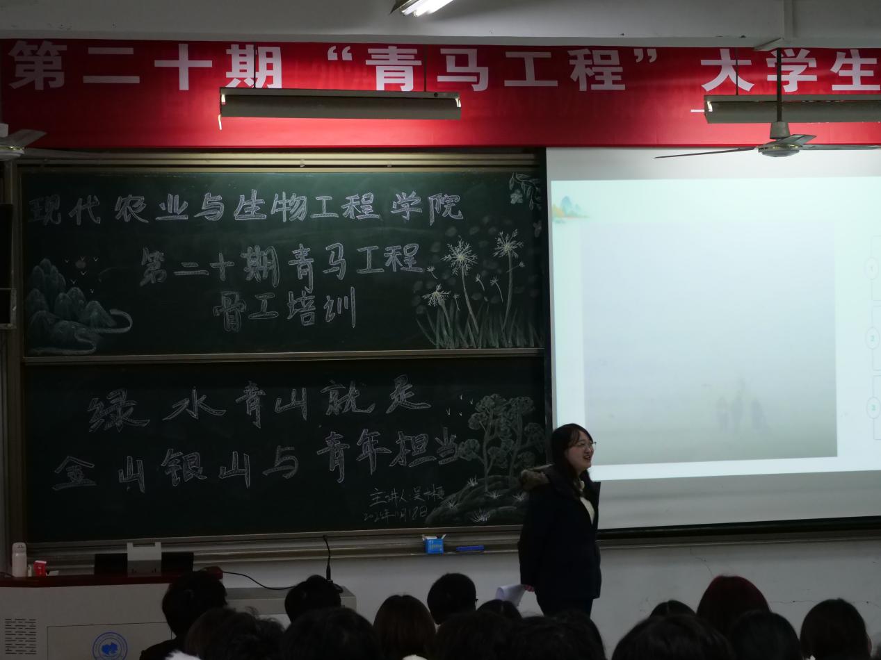 2025年11月18日中午,第二十期青马工程培训第三次课程在格律楼03教室举行,主题为绿水青山就是金山银山与青年担当。本次培训由吴林蔓老师主讲,全体青马工程学员参与