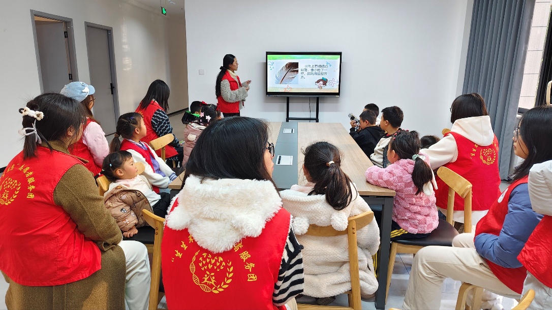 活动中,志愿者结合精心准备的内容,以生动易懂的语言为小朋友们开启生物小课堂,分别讲解了昆虫的分节身体特征、植物的叶脉差异以及鸟类的身体形态特点,用贴近生活的例子帮助小朋友们直观认识不同生物的典型结构,激发大家的探索热情。
