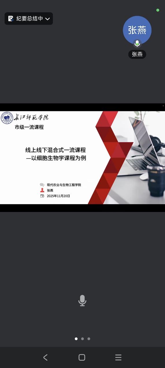 本次活动为系内教师搭建了一个宝贵的线上交流平台。两位负责人的倾囊相授,不仅系统展示了一流课程的建设路径、创新方法与核心要点,更提供了可借鉴的实操经验与深刻思考。分享内容为有意参与课程建设的教师提供了清晰的指引和启发。生物科学系鼓励有意向深入申报一流课程的教师,在本次活动基础上,主动与韩宗先老师、张燕老师进行更细致的线下交流与学习,共同推动专业课程建设质量的整体提升。