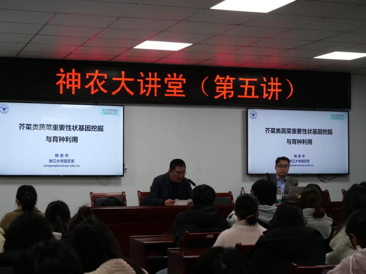 12月6日上午,我院“神农大讲堂”第五讲于格律楼3101会议室开讲。浙江大学巴渝学者杨景华教授受邀作题为“芥菜类蔬菜重要性状基因挖掘与育种利用”的专题讲座,学院师生代表到场聆听。