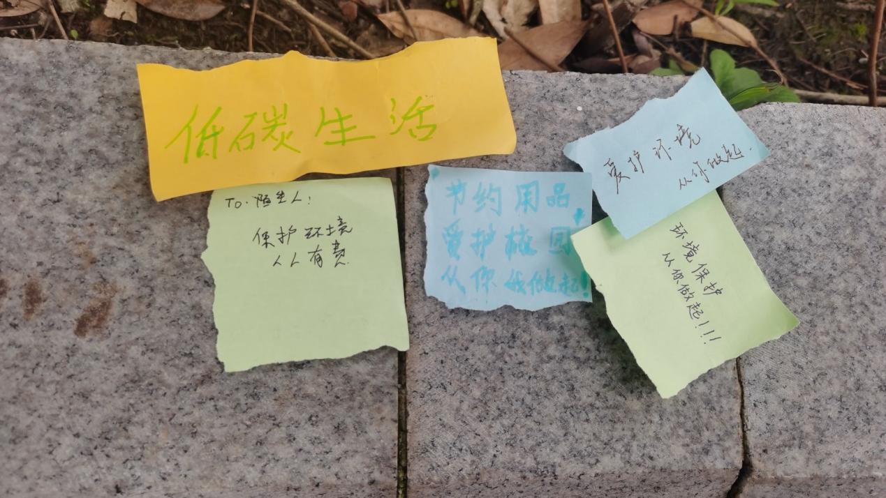 活动同时设置了环保知识问答环节。活动现场的宣讲与互动答题,帮助同学们进一步理解了垃圾分类标准、资源回收利用的重要性。志愿者们也写下自己的绿色校园寄语,让“绿色校园、人人有责”的行动意识在实践中不断深化。