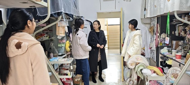 在北苑六舍的走访中,郑悄然院长和孙惠临老师同样深入寝室,与同学们亲切交谈。郑悄然院长细致询问了大家的课堂出勤情况、课程学习感受以及近期的学习状态,了解同学们在适应大学学习节奏方面是否存在困难。她叮嘱大家要合理安排作息时间,保证充足睡眠,注意冬季保暖和流感预防,养成健康、规律的生活习惯。针对部分寝室存在的内务整理不够规范等问题,郑院长也提出了改进建议,希望同学们在注重学习的同时,也要重视生活细节,把寝室当成锻炼自我管理能力和集体意识的重要场所,共同营造整洁、舒适、有序的居住环境。