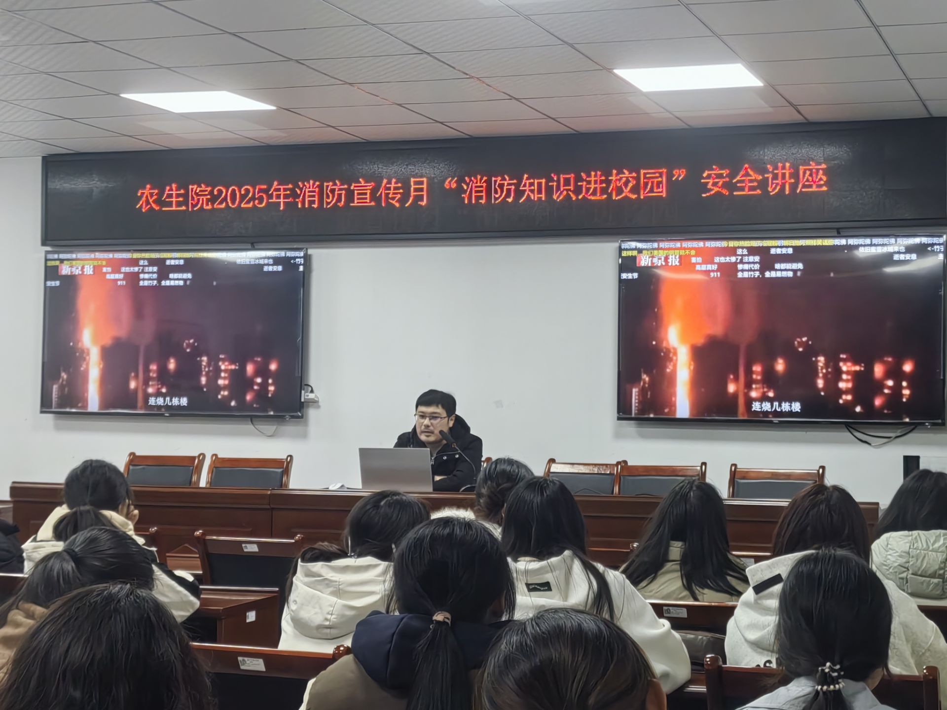 为切实强化冬季校园消防安全管理,提升师生冬季火灾防范意识与应急避险能力,2025年12月1日,现代农业与生物工程学院在格律楼3101面向全院学生社区室长、楼长、以及院团委学生会社区建设部学生骨干,开展2025年消防宣传月“消防知识进校园”宣讲活动,为我院学生送上了一堂干货满满的“安全必修课”,全方位筑牢校园冬季消防安全防线。