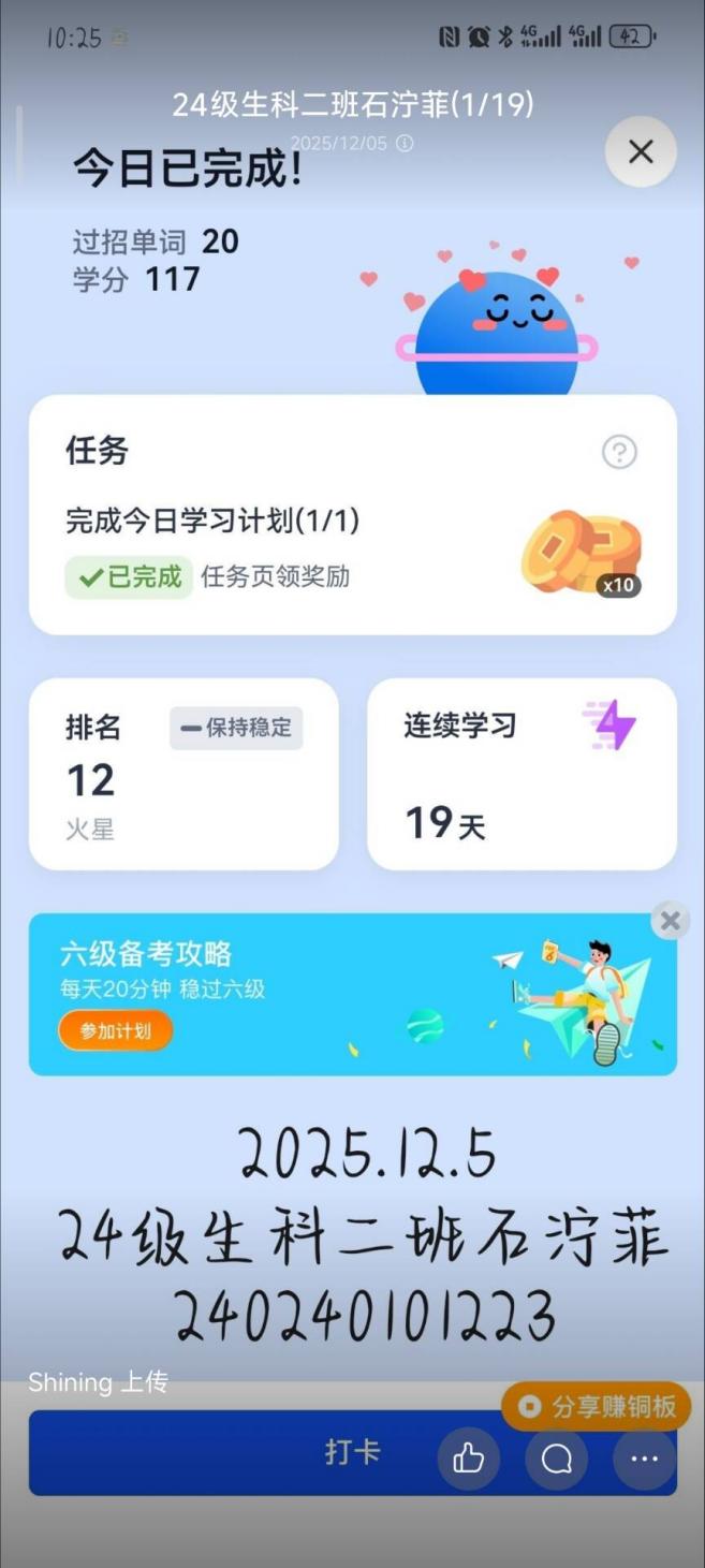 此次英语打卡活动的开展,让备考四六级的学生有了明确的学习抓手,在全院范围内掀起了每日学英语的热潮。打卡机制让同学们的英语学习更有规律,也能在群体氛围中获得坚持的动力。