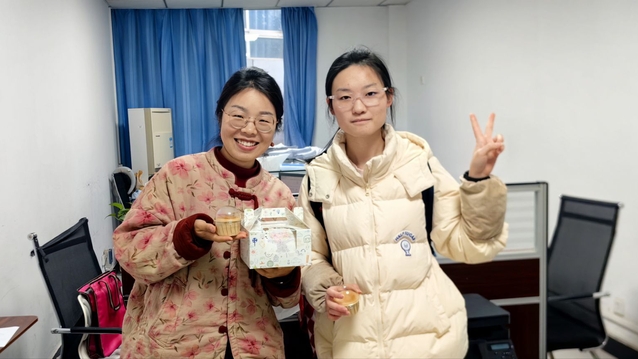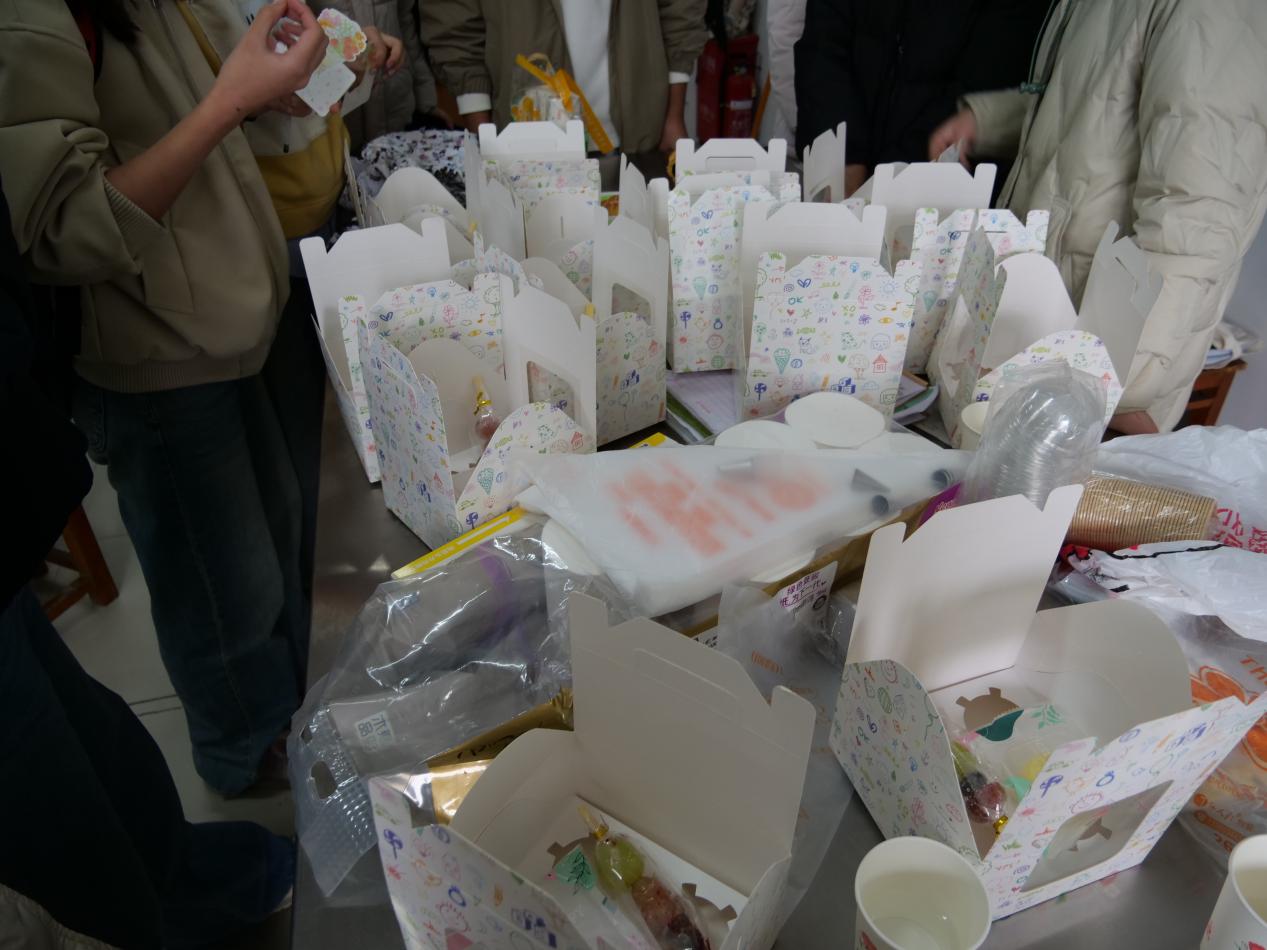 食品制作完成后,同学们精心将糖葫芦、小蛋糕与冰皮月饼包装成盒,并认真写下一段段饱含真情的感恩话语。随后,大家带着这份承载心意的礼物,走向自己想感恩的人——谆谆教诲的老师、默默付出的宿管、热心相助的学长学姐、朝夕相伴的同窗好友。同学们将礼物双手奉上,道一声感谢,诉一句心声,现场的每一个瞬间都洋溢着温暖与感动,大家还纷纷拍照记录下这一温馨时刻。