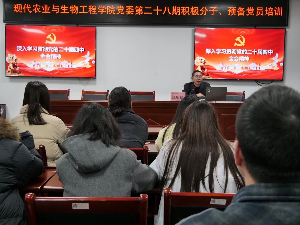 为全面学习好贯彻好党的二十届四中全会精神,引导全院师生把思想和行动统一到党中央关于“十五五”的战略部署上来,按照党中央和市委决策部署,结合学校党委工作安排,现代农业与生物工程学院党委将深入学习贯彻党的二十届四中全会精神作为当前重大政治任务,迅速行动、系统谋划,制定专项宣讲方案,全面推动全会精神在学院落地生根、深入人心。