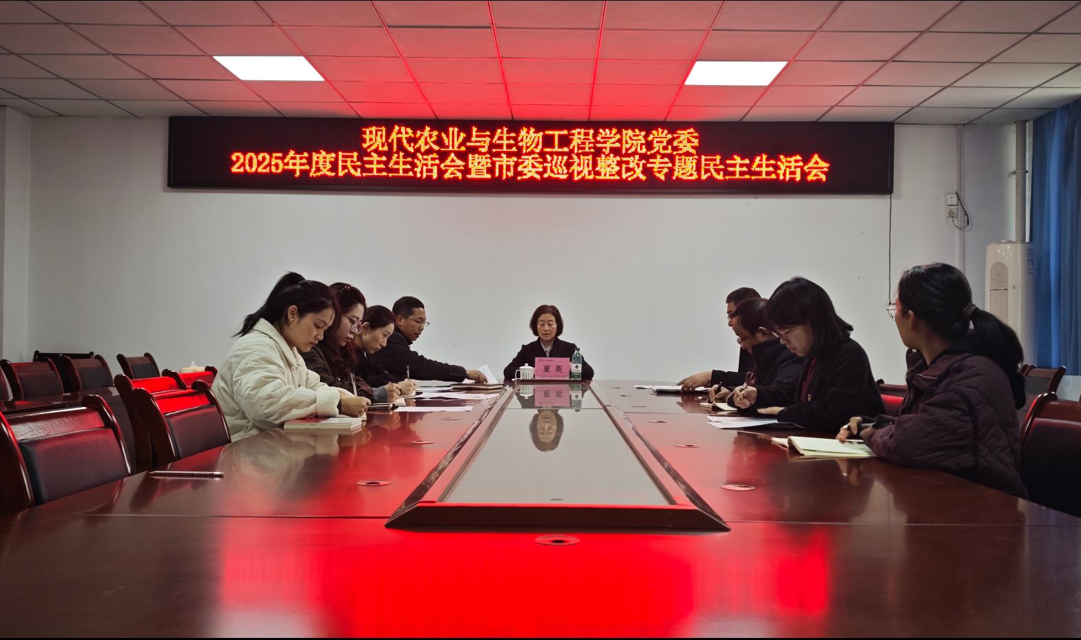 学校党委常委、副校长夏英对本次民主生活会进行了点评。她指出,本次民主生活会会前准备充分、问题查摆深入、民主氛围浓厚、整改措施务实。她结合学院实际,对下一步工作提出四点要求:一是强化理论武装,在以学铸魂筑牢根本上持续用力。要落实“第一议题”制度,持续学习习近平新时代中国特色社会主义思想,抓好学用结合,扎实做好师生思想引领工作,加强意识形态阵地管理。二是狠抓整改落实,在以学促改推动发展上持续用力。要确保整改措施务实、成效明确,全面落实基层党建重点任务,推进党建与业务深度融合、双融双促,以高质量党建引领学院事业高质量发展。三是强化作风建设,在以学正风践行宗旨上持续用力。要压实全面从严治党主体责任,党委书记履行第一责任人职责,班子成员落实“一岗双责”;要聚焦师生关注的热点难点堵点,精准服务师生;要坚持底线思维,严守纪律规矩,营造风清气正的政治生态。四是发扬实干担当,在以学促干推动发展上持续用力。要树立和践行正确政绩观,统筹好显功与潜功,一张蓝图绘到底。她特别强调,要持续做特农科,强化学科专业与产业适配度,扎实推进学位点建设,做好工程认证现场考察准备工作,统筹优化专业布局;要持续抓好学生就业工作,在承压状态下精准发力;要守牢安全底线,高度重视实验室安全、学生心理健康、意识形态等各领域安全;要进一步擦亮“生命树”等思政品牌,提升工作显示度;要进一步提升履职尽责能力,增强推动高质量发展、服务师生、防范化解风险的本领,为学校“十五五”开好局、起好步贡献力量。