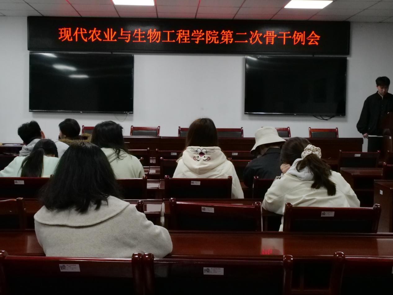 2026年4月2日 ,我院于格律楼3101召开第二次团委学生会部门骨干例会,本次会议由主席团成员郑帛杭主持,团委学生会干部及生协、食协主要负责人参与。
